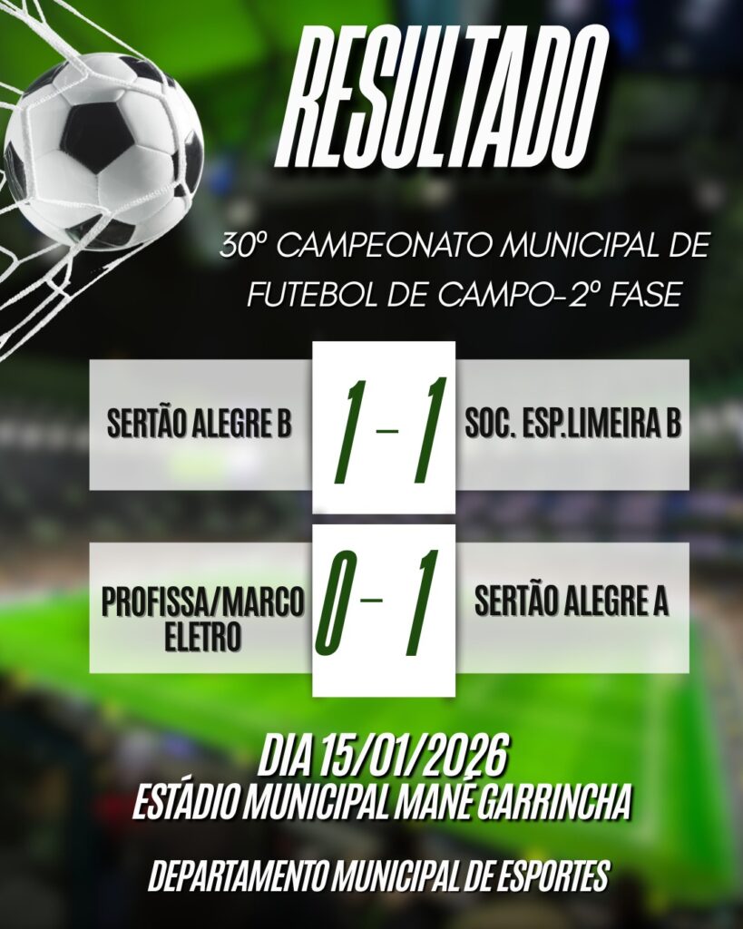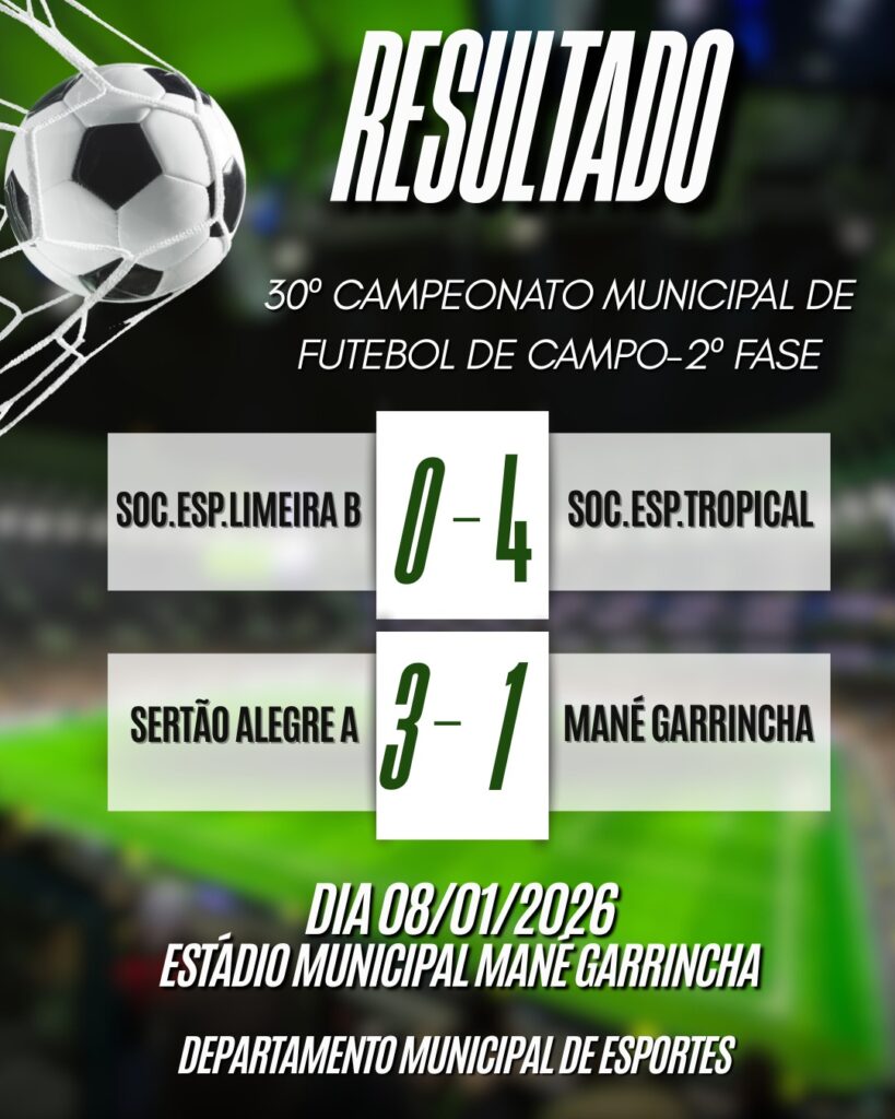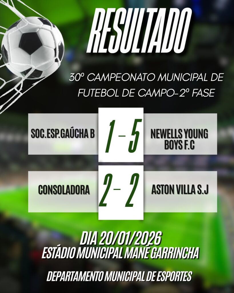 Publicado em 21 de janeiro de 2026 às 16:08No dia 20 de janeiro de 2026, os times se enfrentaram em mais uma emocionante rodada do 30º Campeonato Municipal de Futebol de Campo – Segunda Fase, realizado no Estádio Mané Garrincha.