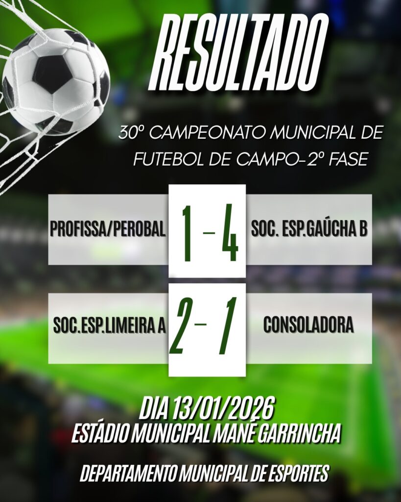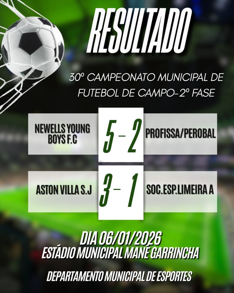Campeonato Municipal de Futebol de Campo – Resultados desta terça-feira dia 20/01/2026