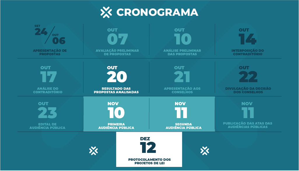 A participação de todos é essencial para a construção de uma cidade mais justa e desenvolvida. Consulte o cronograma completo e participe!