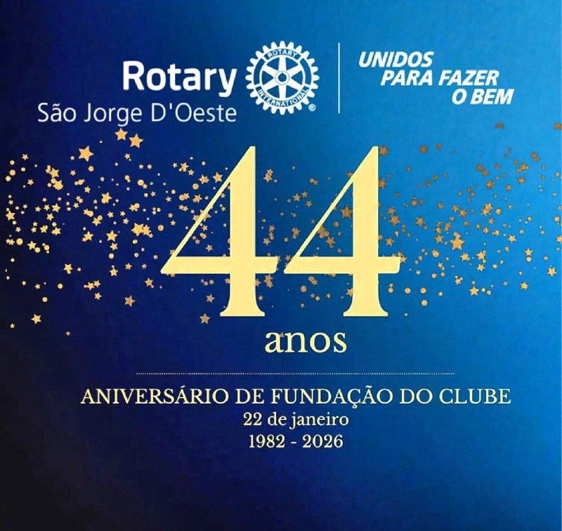 Publicado em 22 de janeiro de 2026 às 16:31O Rotary Club de São Jorge D’Oeste completa 44 anos de história nesta quinta-feira, dia 22 de janeiro. Fundado em 1982, o clube tem uma trajetória marcada pelo compromisso com o serviço comunitário e pela atuação em projetos voltados ao desenvolvimento social do município.